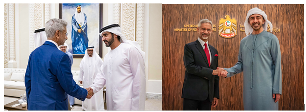 एस जयशंकर ने सोशल मीडिया प्लेटफॉर्म एक्स पर वीडियो के फॉर्मेट में पोस्ट किया। इस दौरे के दौरान, डॉ. जयशंकर ने यूएई के राष्ट्रपति शेख मोहम्मद बिन जायद अल नाहयान से मुलाकात की और प्रधानमंत्री नरेंद्र मोदी का एक पर्सनल मैसेज उन्हें दिया। बातचीत में ऊर्जा सहयोग को मजबूत करने, ट्रेड बढ़ाने और दोनों देशों के बीच व्यापक रणनीतिक साझेदारी को आगे बढ़ाने पर केंद्रित रहा।
