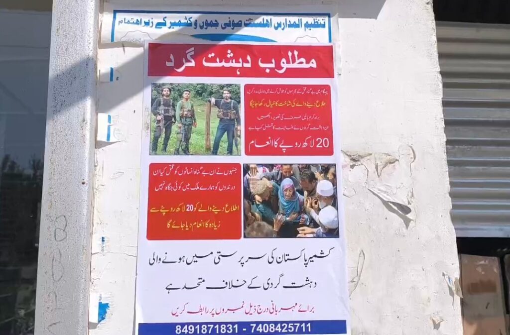 जम्मू-कश्मीर के पहलगाम में 22 अप्रैल को 26 पर्यटकों की निर्मम हत्या करने वाले आतंकियों के पोस्टर जारी कर दिए गए हैं। शोपियां जिले के विभिन्न इलाकों में आतंकियों के पोस्टर लगाए गए हैं, जिनकी सूचना देने वाले को 20 लाख रुपए का इनाम देने की घोषणा की गई है। साथ ही पुलिस की तरफ से कहा गया है कि पहलगाम आतंकी हमले में शामिल आरोपियों की सूचना देने वालों की पहचान गोपनीय रखी जाएगी। जम्मू-कश्मीर प्रशासन ने पहलगाम हमला मामले में 25 अप्रैल को बड़ी कार्रवाई करते हुए त्राल (पुलवामा) और बिजबेहरा (अनंतनाग) में दो आतंकवादियों के घरों को ध्वस्त कर दिया था। रिपोर्ट के अनुसार, पुलवामा जिले के त्राल में आसिफ शेख और बिजबेहरा में आदिल ठोकर के घरों को विस्फोट करके जमींदोज किया गया था। इन आतंकियों पर 22 अप्रैल को पहलगाम के बैसरन में हुए हमले में शामिल होने का संदेह है। अनंतनाग जिले का निवासी ठोकर 22 अप्रैल को पहलगाम में हुए नरसंहार का मुख्य आरोपी है। वह कथित तौर पर 2018 में पाकिस्तान गया था, जहां उसने पिछले साल जम्मू-कश्मीर लौटने से पहले आतंकी प्रशिक्षण लिया था। पुलिस का मानना है कि वह पाकिस्तानी आतंकवादियों के लिए स्थानीय गाइड के तौर पर काम कर रहा था। इसके अलावा, पुलवामा निवासी आसिफ शेख पर इस हमले में शामिल होने का संदेह है। पुलिस ने ठोकर और दो अन्य आतंकवादियों के स्केच जारी किए थे, जिनके पहलगाम हमले में शामिल होने की बात कही जा रही है। बता दें कि पुलिस ने पहलगाम की बैसरन घाटी में पर्यटकों पर हमला करने वाले तीन आतंकवादियों के पोस्टर (स्केच) जारी किए थे। साथ ही सूचना देने वालों के लिए हर आतंकवादी पर 20-20 लाख रुपए के इनाम की घोषणा की थी। उल्लेखनीय है कि पहलगाम आतंकी हमले के बाद भारतीय सेना ने ऑपरेशन सिंदूर चलाकर पाकिस्तान स्थित आतंकियों के ठिकानों को तबाह कर दिया था। इस कार्रवाई में कई आतंकी मारे गए।