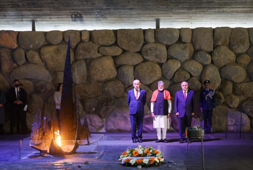 यरूशलम: इजरायल दौरे के दूसरे दिन, गुरुवार को प्रधानमंत्री नरेंद्र मोदी ‘याद वाशेम’ पहुंचे। नाजी शासन में मारे गए 60 लाख यहूदियों को श्रद्धांजलि अर्पित की और इसके बाद प्रेसिडेंशियल गार्डन में राष्ट्रपति हर्जोग के साथ ‘एक पेड़ मां के नाम’ लगाया। भारतीय विदेश मंत्रालय के प्रवक्ता रणधीर जायसवाल ने एक्स पोस्ट पर इसे नरसंहार के पीड़ितों को दिया गया सम्मान बताया।