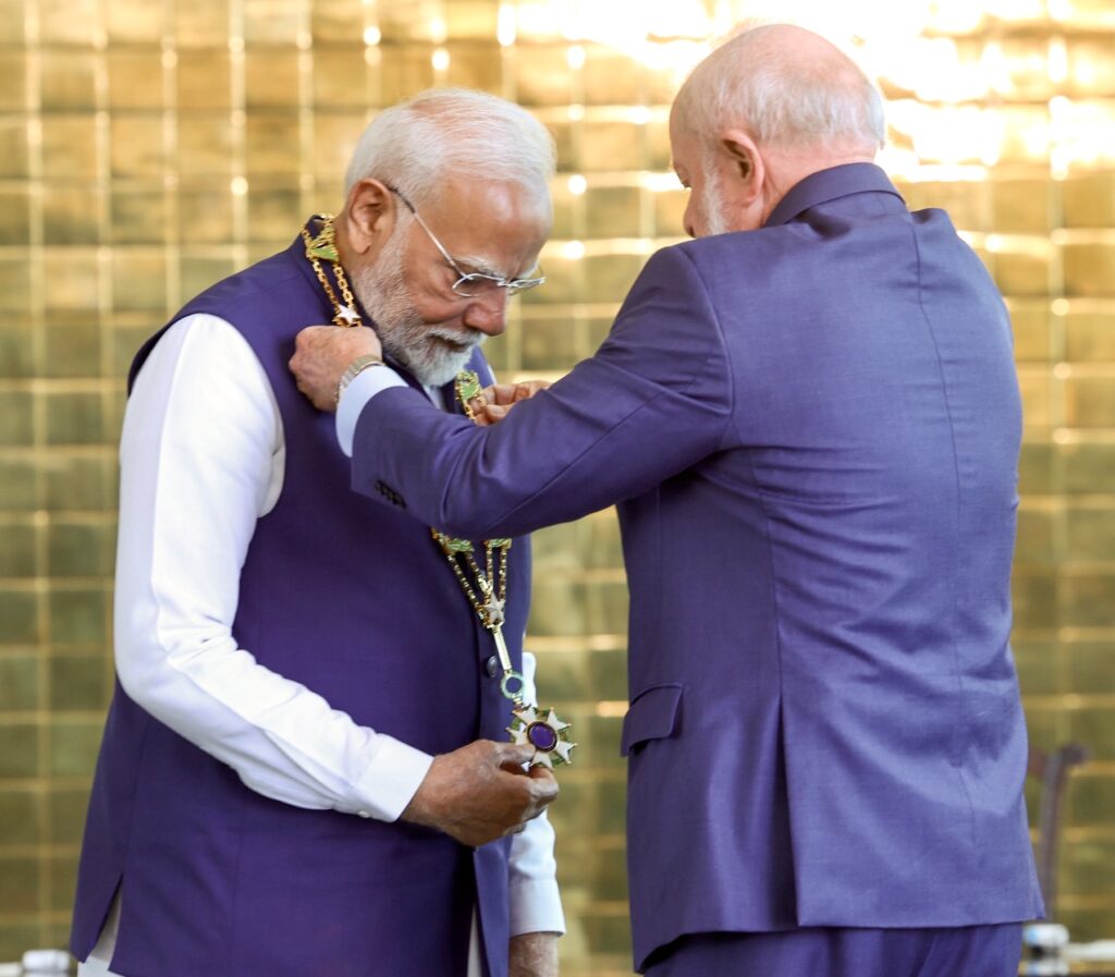 नई दिल्ली, भारत के प्रधानमंत्री नरेंद्र मोदी को ब्राजील में सर्वोच्च सम्मान मिलने पर देश के नेताओं ने खुशी जताई। इसी कड़ी में दिल्ली की मुख्यमंत्री रेखा गुप्ता ने अपने आधिकारिक एक्स हैंडल से पोस्ट किया। सीएम रेखा गुप्ता ने इसे गौरव का क्षण बताया। रेखा गुप्ता ने इस उपलब्धि को साझा करते हुए एक्स पोस्ट में कहा, “यह भारत के लिए गौरव का क्षण है। प्रधानमंत्री नरेंद्र मोदी को ब्राजील द्वारा सर्वोच्च नागरिक सम्मान मिलना भारत की विश्व में बढ़ती प्रतिष्ठा का प्रतीक है।” उन्होंने आगे लिखा, “यह प्रतिष्ठित सम्मान प्रधानमंत्री को प्रदान किया गया 26वां अंतरराष्ट्रीय सम्मान है, जो उनके दूरदर्शी नेतृत्व और भारत की गतिशील कूटनीति की निरंतर वैश्विक मान्यता को दर्शाता है।” विदेश मंत्री डॉ. एस. जयशंकर ने एक्स पोस्ट करते हुए लिखा, “प्रधानमंत्री नरेंद्र मोदी को ब्राजील के सर्वोच्च नागरिक सम्मान, ‘ग्रैंड कॉलर ऑफ द नेशनल ऑर्डर ऑफ द सदर्न क्रॉस’ से सम्मानित किया जाना हम सभी के लिए गौरव का क्षण है।” जयशंकर ने एक्स पोस्ट में आगे लिखा, “यह भारत-ब्राजील साझेदारी को मजबूत करने में प्रधानमंत्री मोदी के प्रयासों और एक सुधरी हुई एवं प्रतिनिधि अंतरराष्ट्रीय व्यवस्था के प्रति हमारी साझा प्रतिबद्धता को मान्यता देता है।” खादी एवं ग्रामोद्योग आयोग एमएसएमई मंत्रालय के अध्यक्ष मनोज गोयल ने कहा, “ब्राजील का यह सर्वोच्च सम्मान पीएम मोदी का 26वां अंतरराष्ट्रीय सम्मान है। अब तक 26।” पूर्व केंद्रीय मंत्री स्मृति ईरानी ने अपने आधिकारिक एक्स हैंडल पर लिखा, “प्रधानमंत्री नरेंद्र मोदी को ब्राजील के सर्वोच्च नागरिक सम्मान, ग्रैंड कॉलर ऑफ द नेशनल ऑर्डर ऑफ द सदर्न क्रॉस, से सम्मानित होने पर बधाई। ब्रिक्स से लेकर जी20 तक, प्रधानमंत्री मोदी के नेतृत्व ने भारत की वैश्विक प्रतिष्ठा को ऊंचा उठाया है। यह सम्मान उनकी राजनीतिक क्षमता और विश्व व्यवस्था को आकार देने में भारत की बढ़ती भूमिका का एक उपयुक्त सम्मान है।”